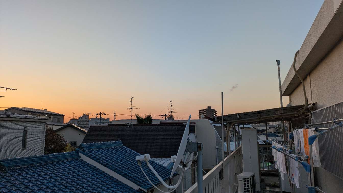 うっかりしていて、こんな時間にタオルを干しに屋上に行っていた夕暮れ時。。。