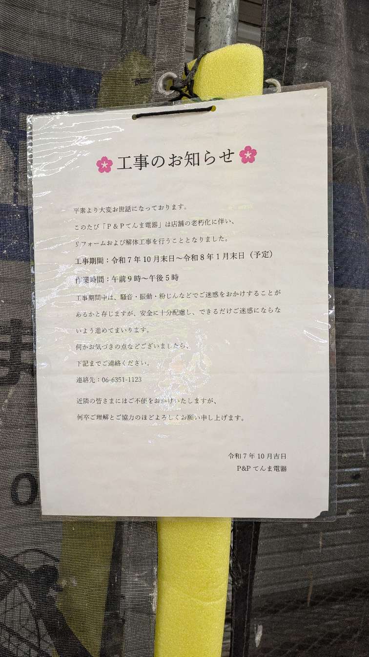 目の前のお店が閉まるのはさみしいなぁ。。。