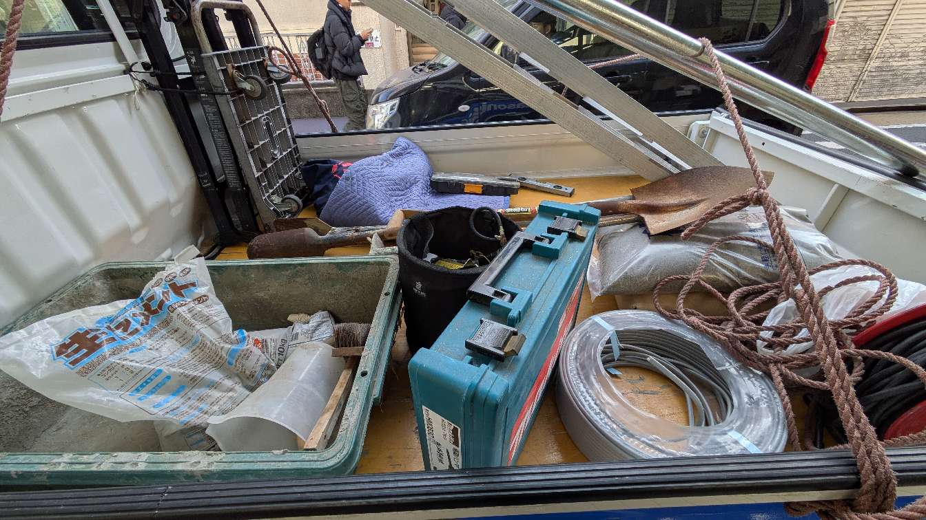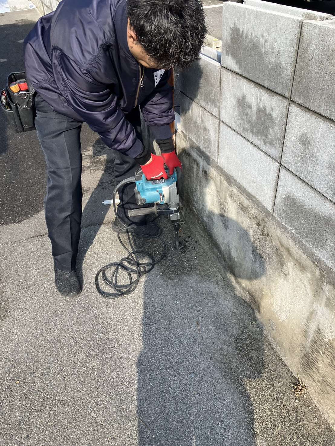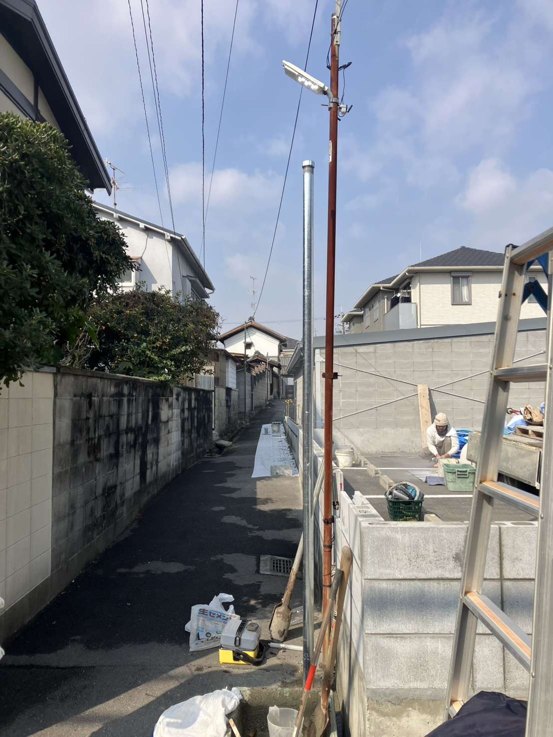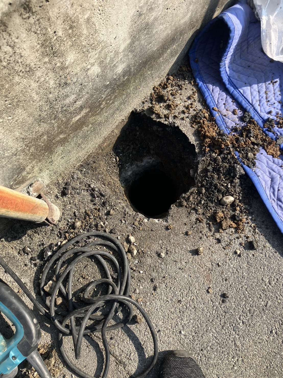 そこへあの長いポールを立てて、セメントを流し込む社長。