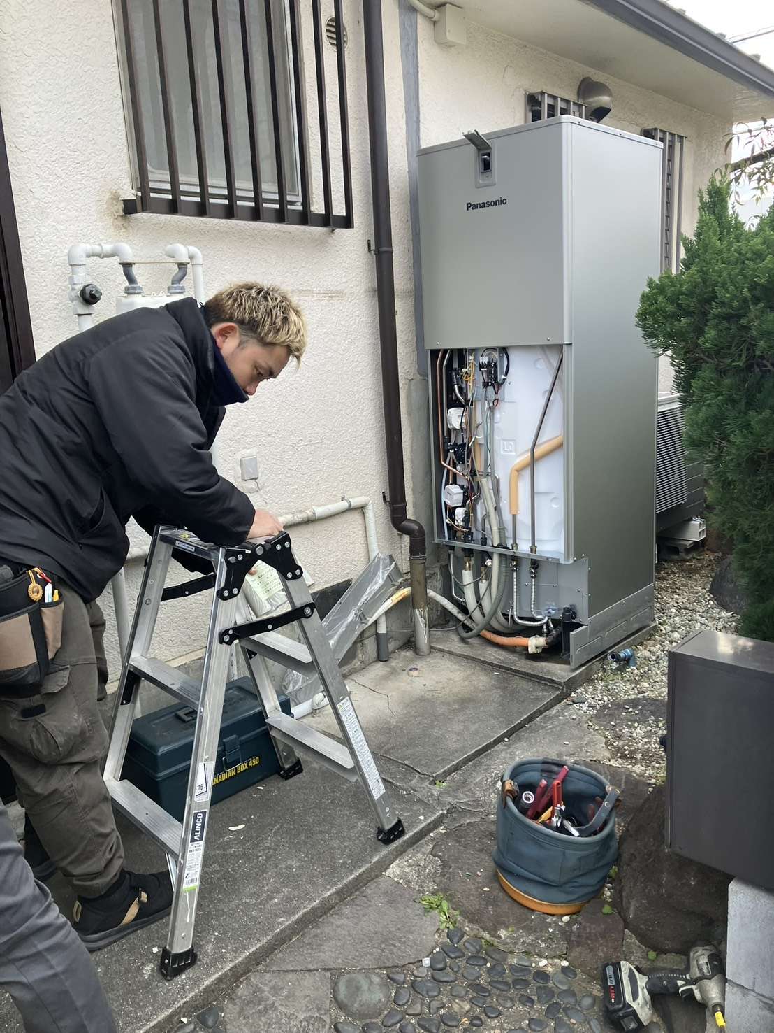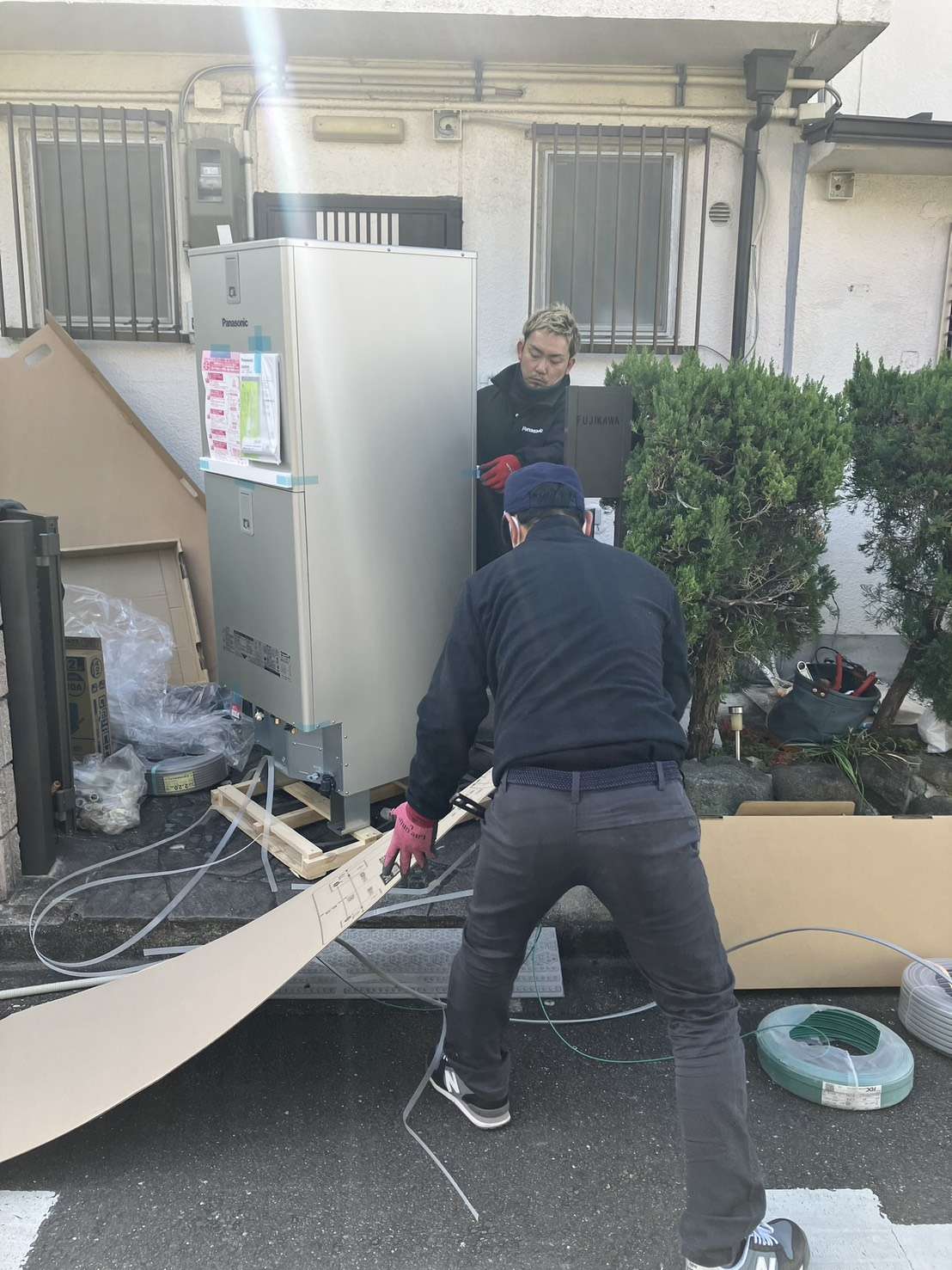 昨日は朝からエコキュートの工事でした。