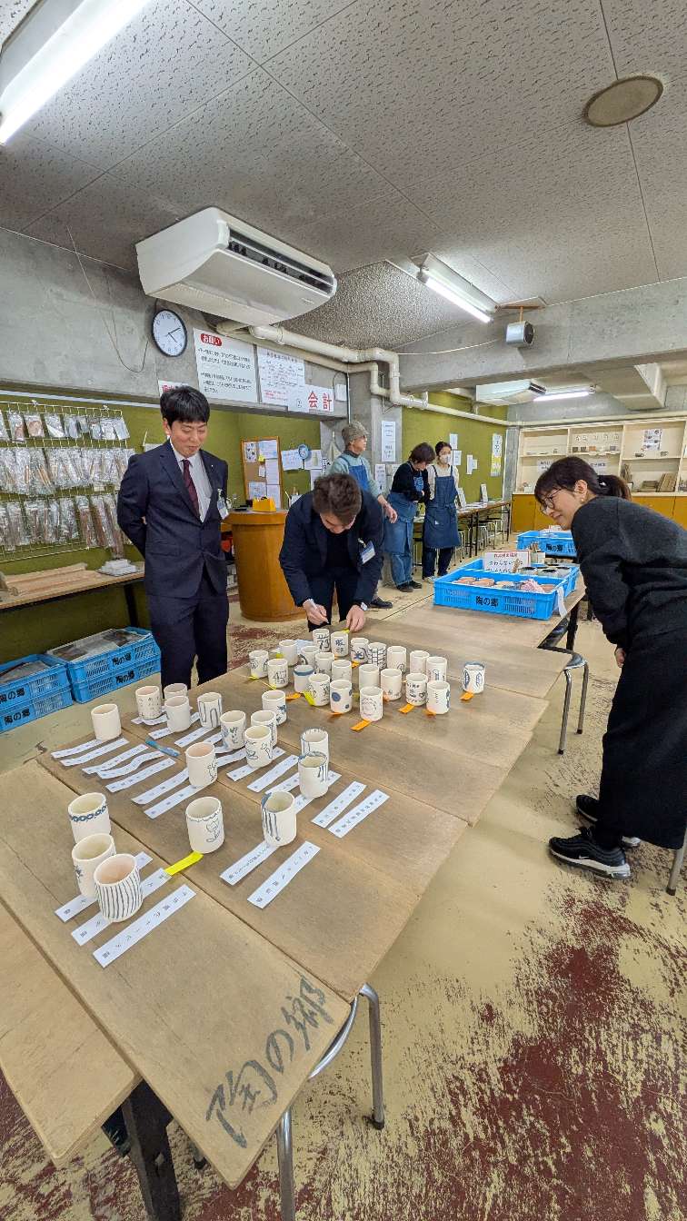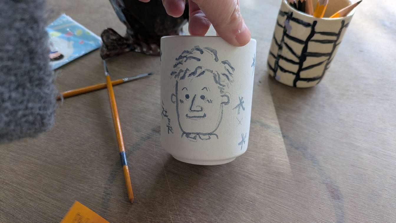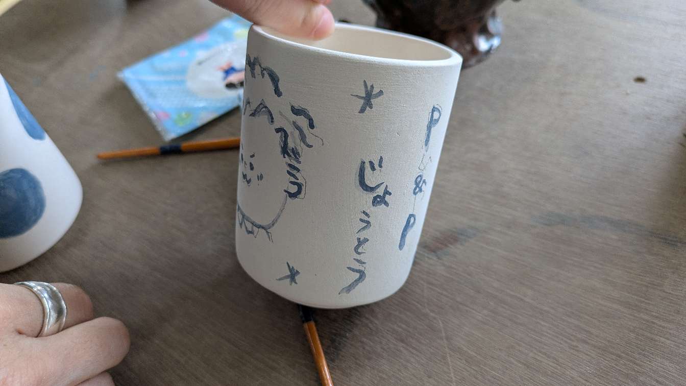 コップに絵付け体験もやって来ました。