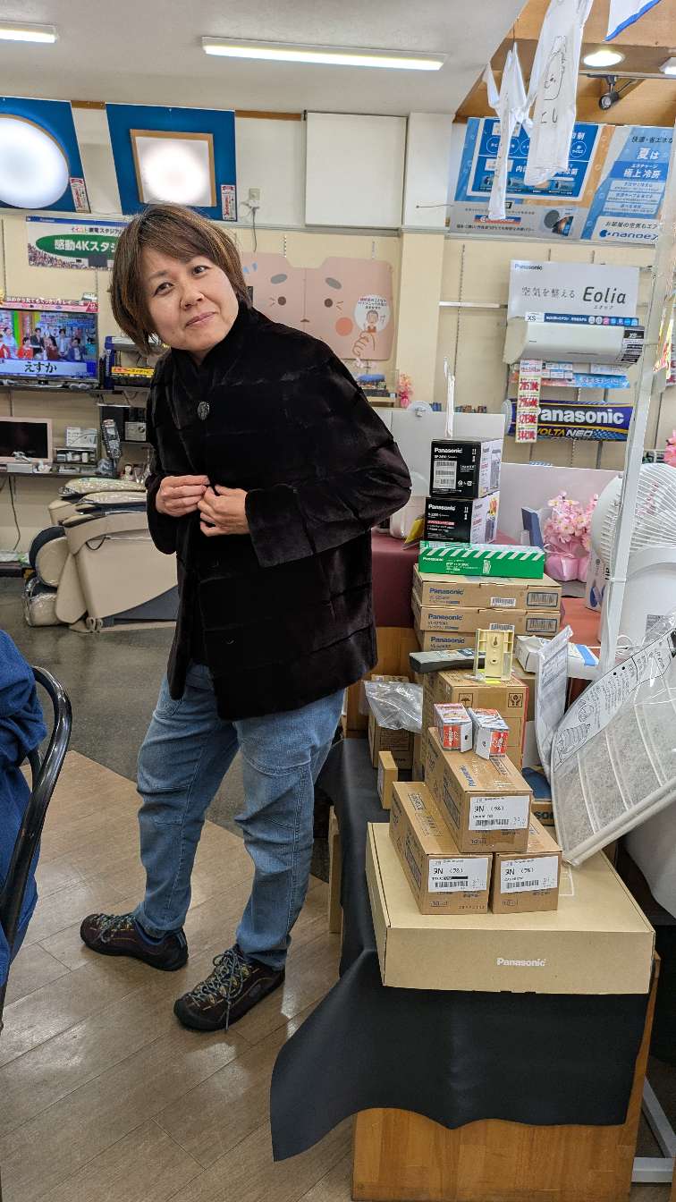 お客様が持って来ていたコートを次々に試着していく私達🤣🤣🤣