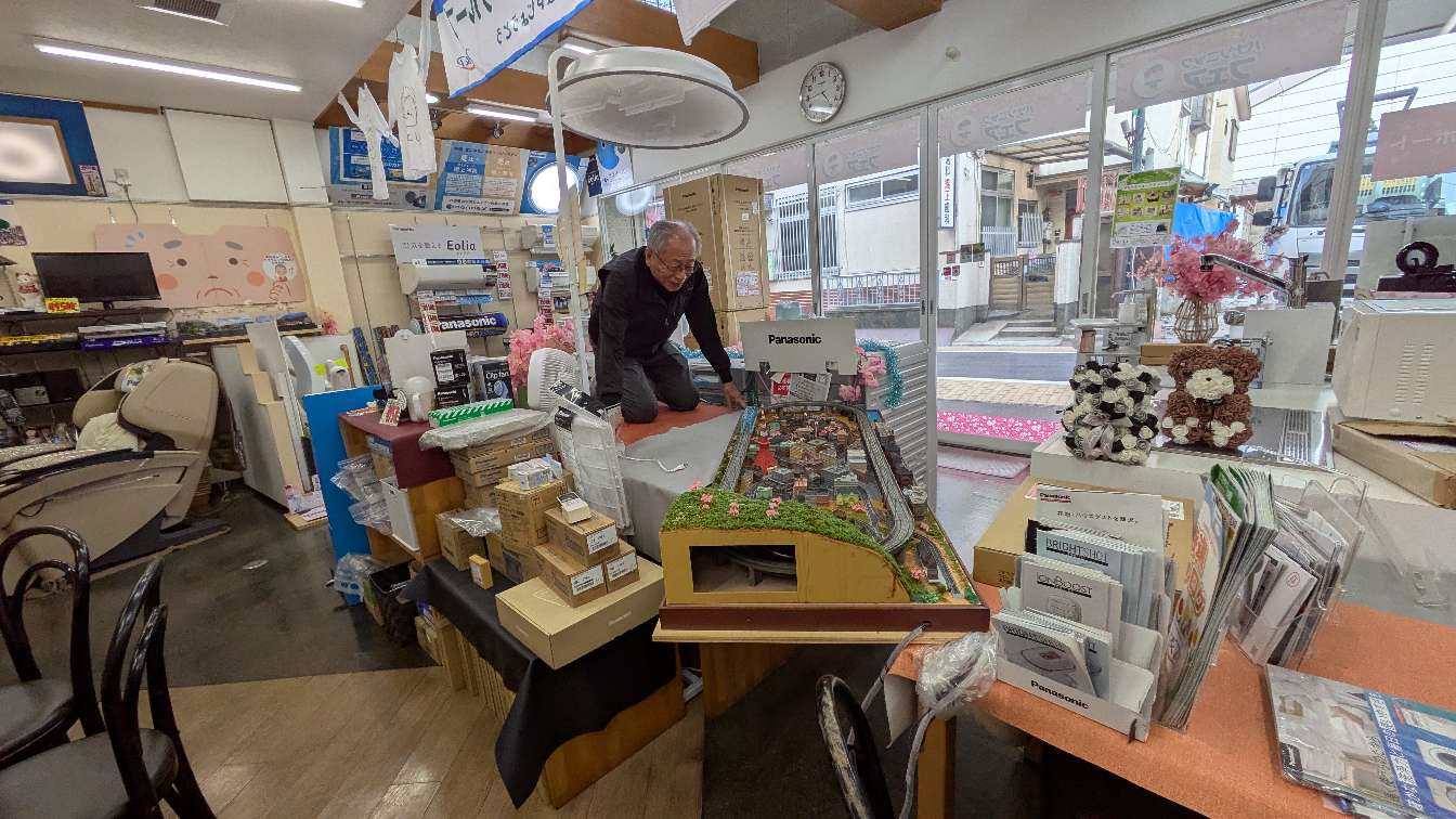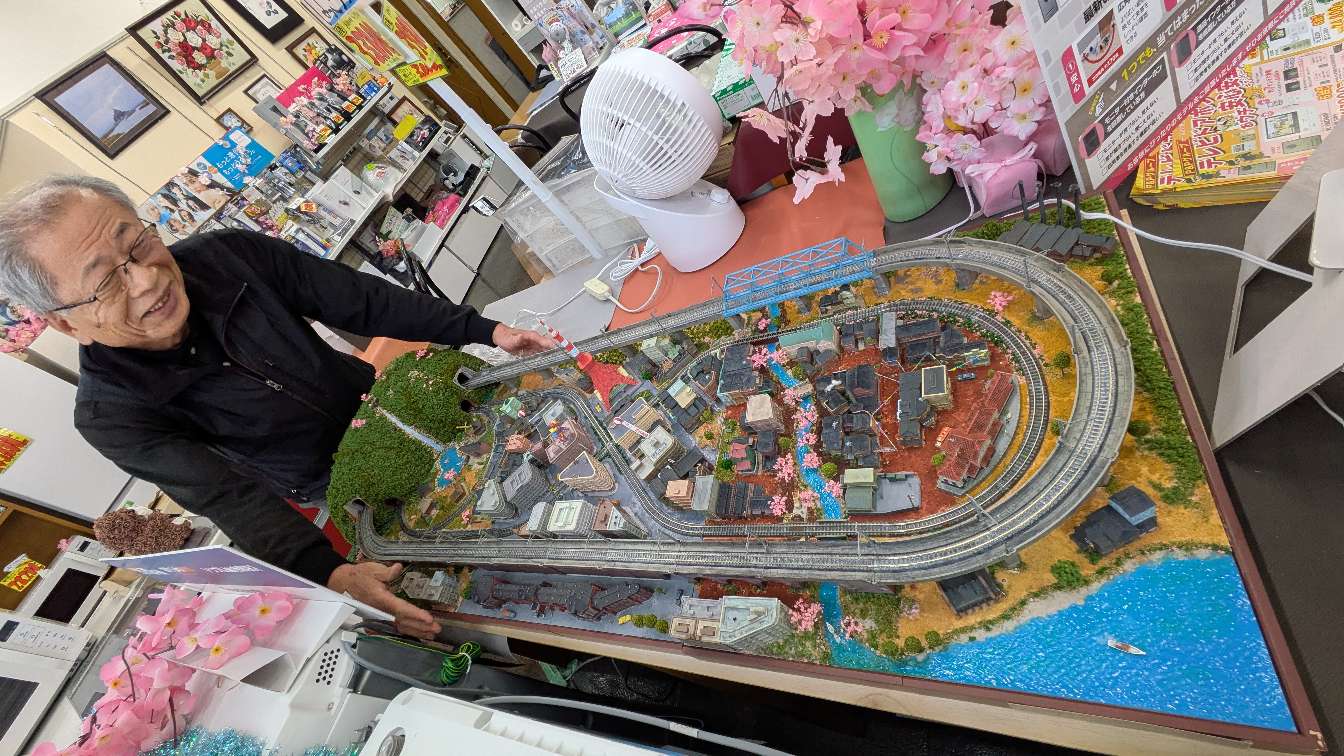 鉄道模型好きのお友達と嬉しそうに眺めている姿は、まるで少年♡笑