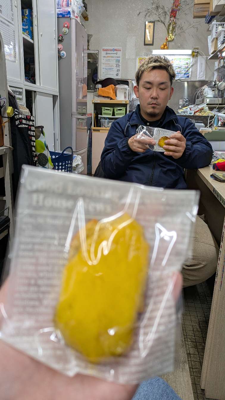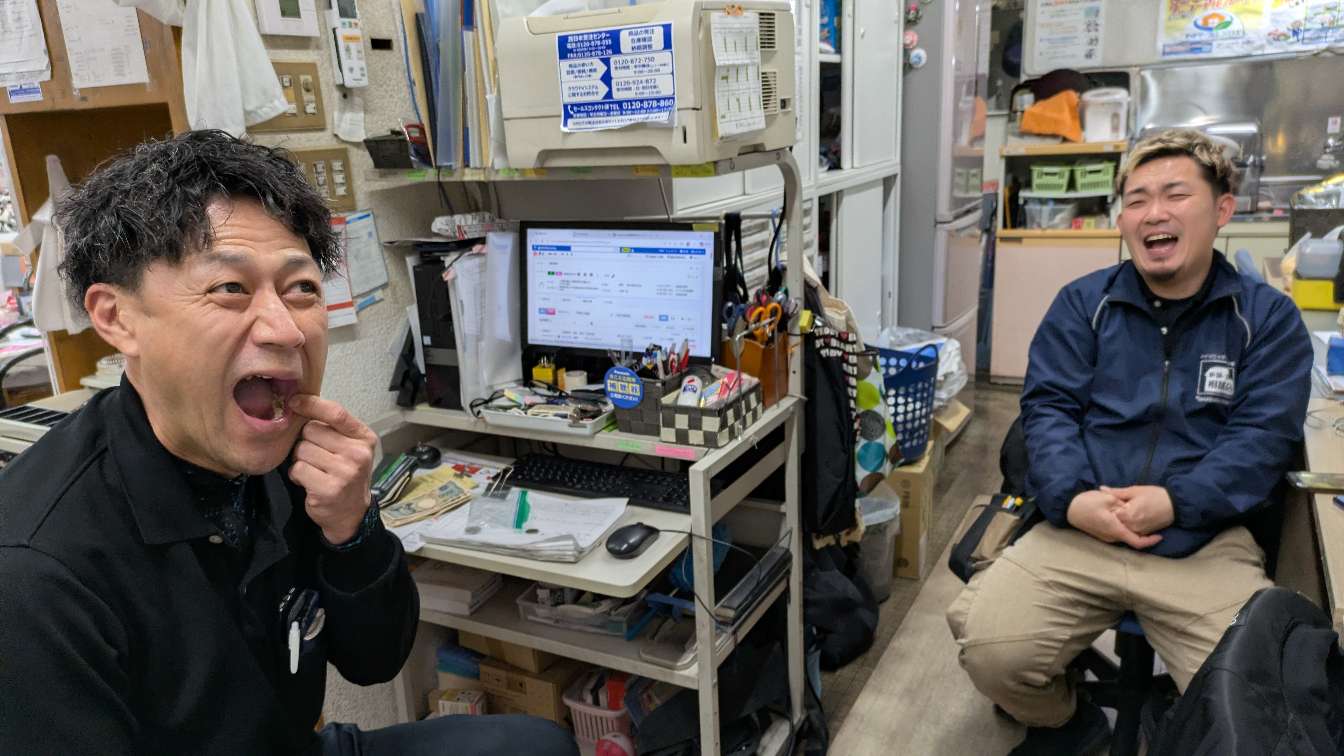 さとしが食べていたグミをもらって食べて銀歯が取れた社長。笑