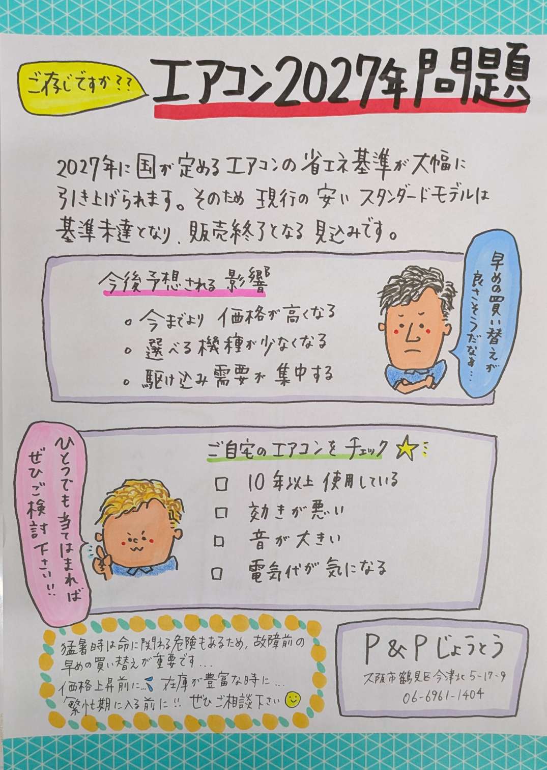 省エネ基準の大幅な引き上げにより、現行のスタンダードタイプのエアコンの製造、販売が出来なくなるため、本体価格が大幅に上昇する可能性があります。