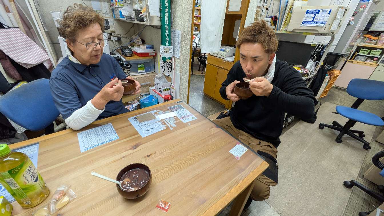 夕方、まゆみさんが作ってくれたぜんざいを食べて休憩❤️